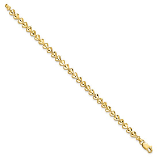 From The Love Letter Collection ll, the COSETTE Eternity Heart Bracelet is crafted in solid 10K gold, featuring hearts that encircle the wrist for a continuous, timeless design. Each heart catches the light with a radiant, durable finish, showcasing exceptional craftsmanship. Perfectly balancing delicate and substantial, this bracelet is refined for everyday wear yet elevated for special occasions a true heirloom meant to be cherished and passed down for generations.